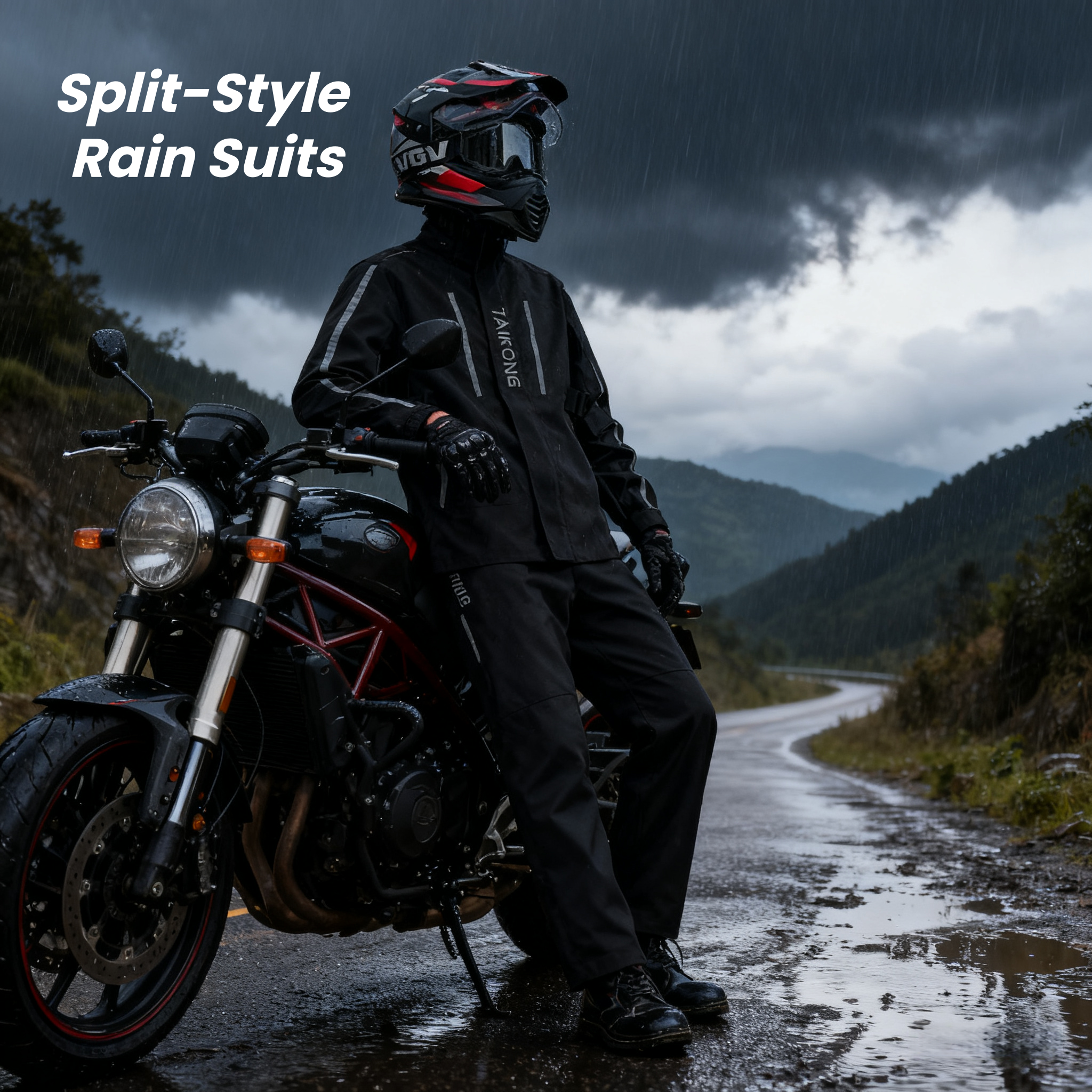 We offer split-style rain suits for riders who need flexibility and mobility, and one-piece full-body raincoats for maximum coverage during commuting or outdoor activities.
